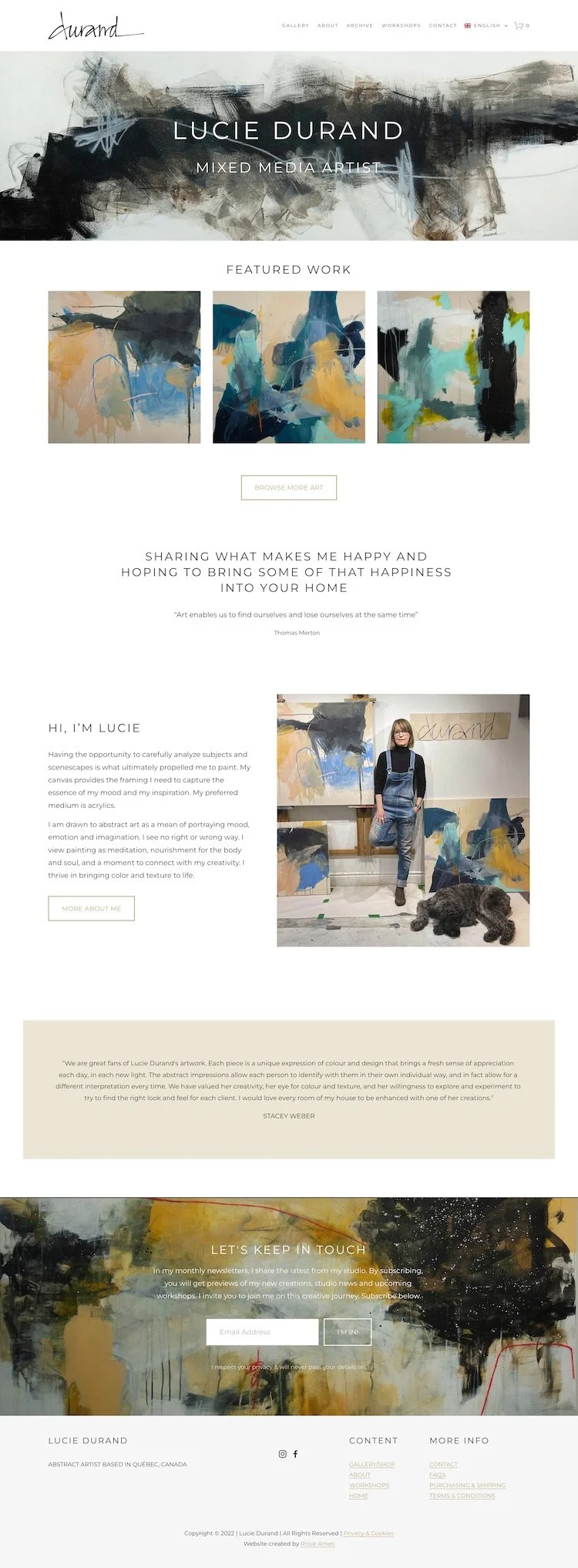 Lucie Durand is a mixed media artist based in Canada, She wanted a minimal and contemporary website to showcase and sell her artwork .